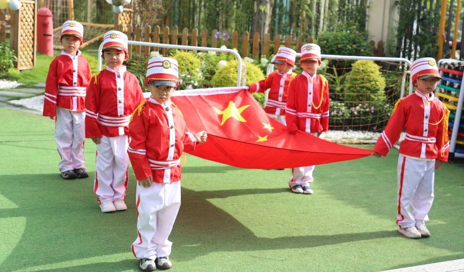 庄严的升旗仪式上,大一班的小护旗手步伐坚定——红旗扬起,国歌嘹亮,家国情怀悄然根植童心。