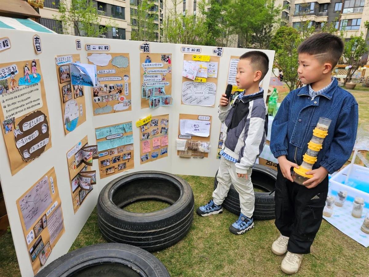 项目接近尾声,我们精心策划了一场课程发布会,邀请家长走进幼儿园共同见证孩子们的探索成果。活动现场,孩子们自信满满地站在自己制作的污水过滤器前,化身 “小小讲解员”,向家长们分享起制作过程中遇到的问题及解决方法。展示区还陈列着孩子们在探索过程中的记录图表、绘画作品,以及实验过程的照片。家长们驻足观看,不时发出赞叹,有的家长感慨道:“真没想到孩子能通过自己的尝试解决这么多问题,还学到了这么多知识!”