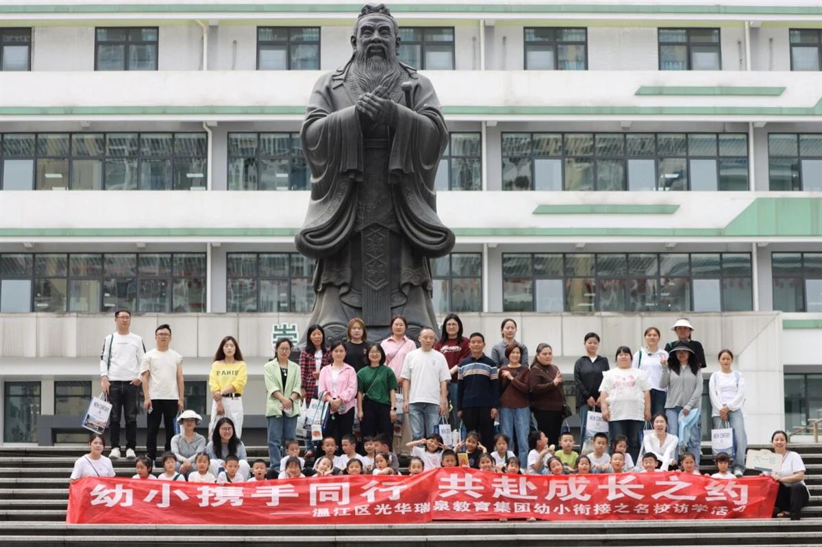 时光悄然流逝,毕业的钟声即将敲响,小学到底是什么样子的呢?小学和幼儿园有什么不同呢?这些小问号成为了孩子们对小学的无限期待。为落实《教育部关于大力推进幼儿园与小学科学衔接的指导意见》文件精神,深入推进幼儿园与小学的双向衔接,2025年4月28日,涌泉四幼大班组全体师生及家长代表走进成都市温江区新世纪光华学校,通过全景式体验,开展了一场丰富充实的访学活动。